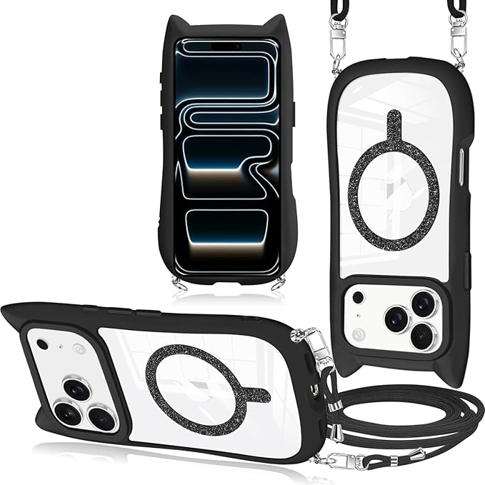 iPhone 17 ProMax ケース クリア ネコ ねこ リング マグセーフシール PC背面+ TPU ストラップ付き 肩掛けスマホケース ストラップ着脱可 いphone 17promax 携帯カバー 可愛い 人気 全面保護 耐衝撃 高質感 | KAZESHOP