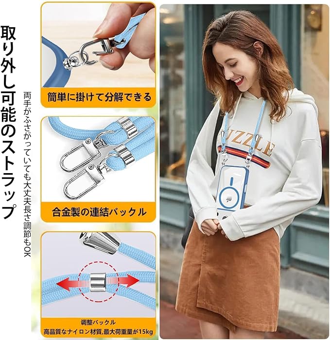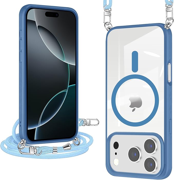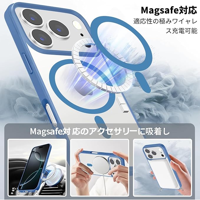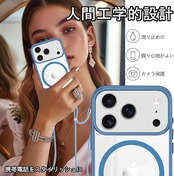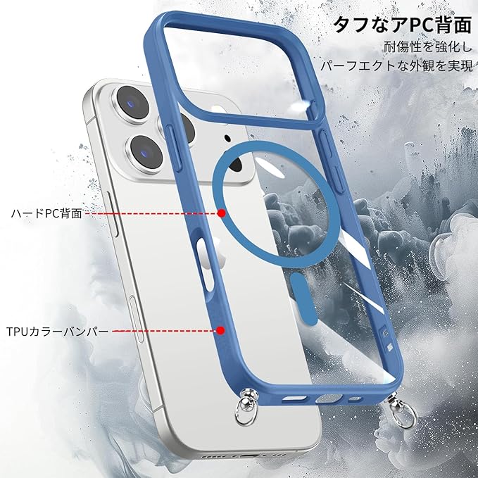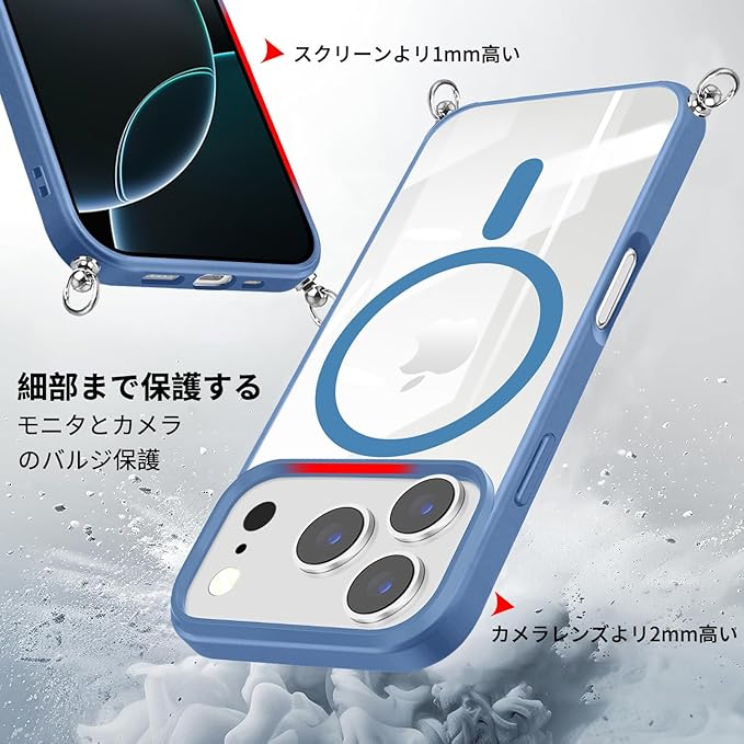 iPhone 17 Pro Max 用 ケース クリア ショルダー MagSafe対応 ワイヤレス充電 アクリル背面 耐衝撃 マグネット搭載 アイフォン17プロマックス ケース マグセーフ対応 耐久性 滑り止め 黄変防止(ブルー) | KAZESHOP