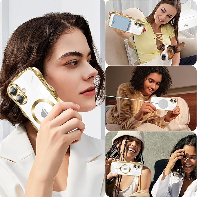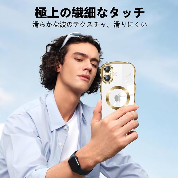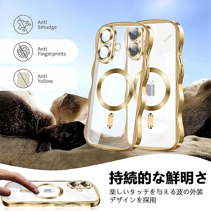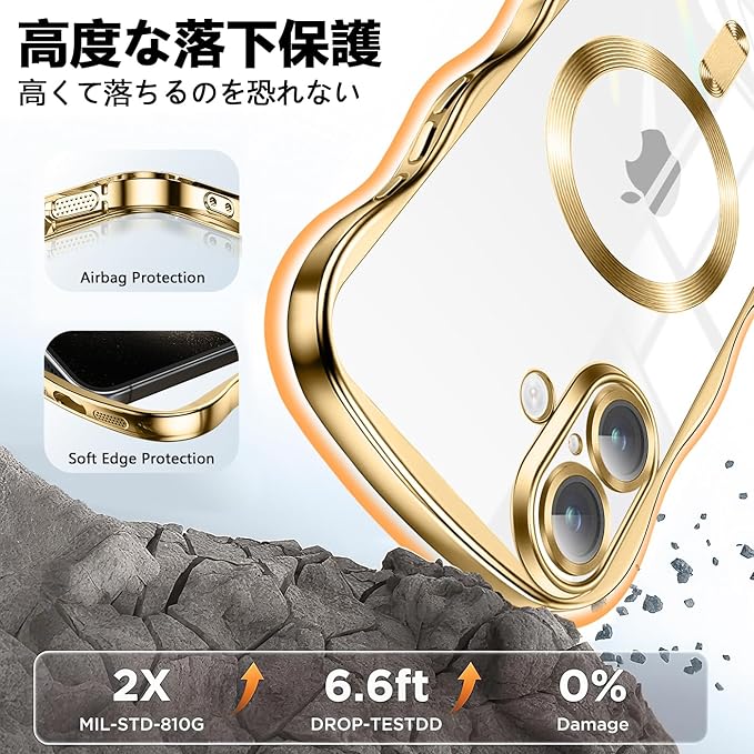 ケース iPhone 17 pro max 用の 波状フレーム 透明バックシェル アイフォン17プロマックス カバー 人気 ワイヤレス充電 オールインワンTPUボタン 耐衝撃 マット感 いphone17promax スマホケース 磁気吸引式携帯ケース 保護ソフト 取り外し 指紋防止 滑り止め 薄型 黄ばみ無し すり傷防止カメラ保護 めっき技術 (ゴールド) | KAZESHOP