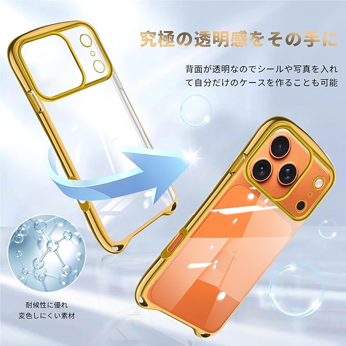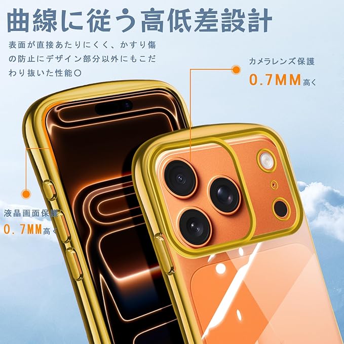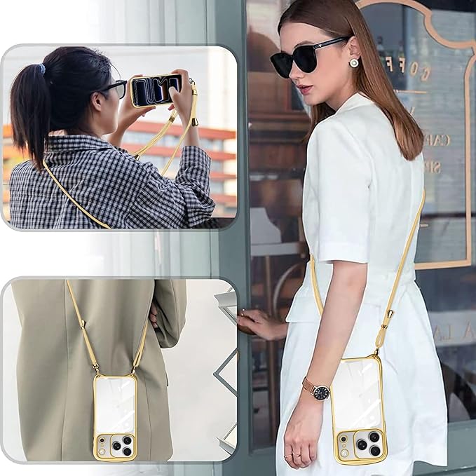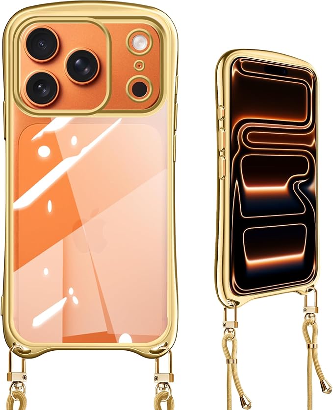 iPhone 17 Pro Max 用の ケース ショルダー ストラップ iPhone 17ProMax 用の カバー クリア 斜めかけ 肩掛け 首掛け 韓国 アイフォン17 プロ マックス 用の スマホケース ゴールド | KAZESHOP