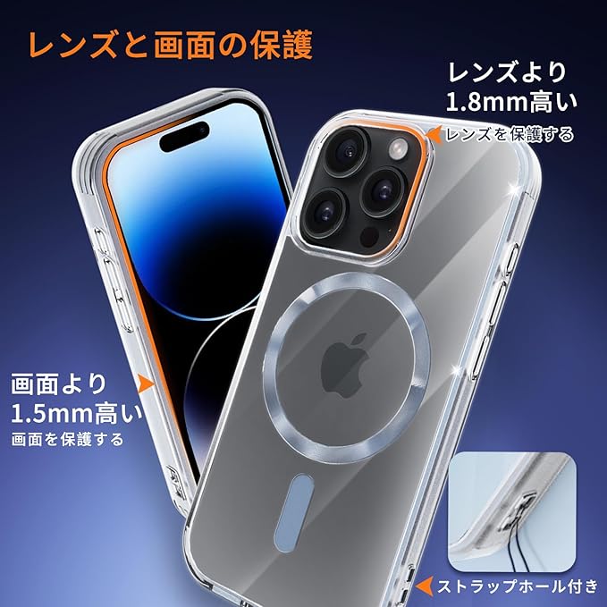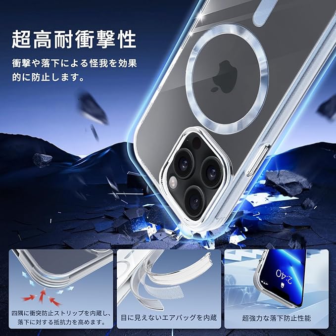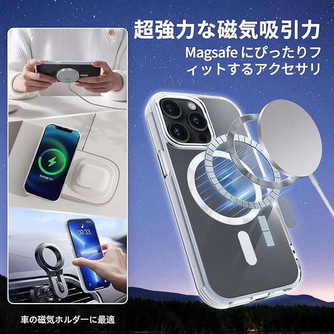 【MagSafe対応・超強力な磁力】 ハイパワーマグネット内蔵、でいくら振っても落ちません。自動位置合わせとしっかりと吸着が可能になり。すべてのMag Safeアクセサリをサポート。MagSafeワイヤレス充電器、MagSafeカードケース、MagSafeリング、車載スタンドなど様々なMagSafeニーズに対応。