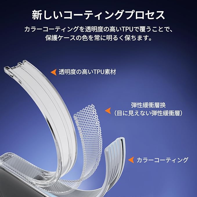 【決して黄色くない/色褪せない】弊社のスマートフォンケースの背面パネルには透明度の高いPC素材を使用しております、酸化防止の特殊加工により黄変への耐性があり、長時間、透明度を保ちます、光透過率は99.9%に達した。フレームには高品質で透明度の高いTPU素材を使用しています、新しいスプレー塗装技術を使用してTPUの内側を着色します。高い気密性でスマホケースの色褪せを防ぎます。透明度の高いPC素材と全く新しいスプレー塗装技術、本来の崇高な美しさと高級感を損なわなく、いつものスマホに上品さをプラス!