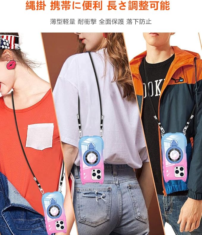 【多目的キャリー & ファッションデザイン】iPhone 17 Pro Max ケースにはネックバンドが付属しています、可首掛け 、可肩掛け、斜め掛けストラップなど様々な用途に活用できる携帯ストラップ。ショルダーストラップの長さは個別に調整できます、手を離しても、携帯電話を携帯できます、携帯を無くす心配もいらないです、作業、旅行、出張、ショピング、散歩、コンサート、パーティーに最適です。柔らかいナイロンストラップで首を快適に保ち、ストレッチの長さを調整でき、取り外しやすいのも特徴です、ストラップを取り外して、電話ケースを単独で使用できます。