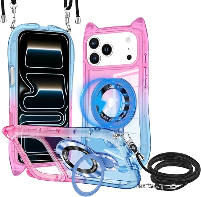 iPhone 17 Pro Max 用 ケース クリア MagSafe対応 リング付き TPU バンパー ネック ショルダー あいほん 17 promax カラー 猫耳 携帯カバー 肩掛け 首掛け 斜めがけ 紐付き 韓国 かわいいファッション 耐衝撃 車載対応 アイフォン 17 PRO MAX スマホケース | KAZESHOP