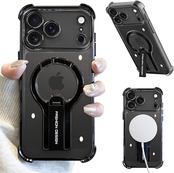 iPhone 17 pro max 用 ケース アイホン17 pro max カバー スタンド機能 縦横両対応 iphone 17 pro max カバー 耐衝撃 リング マグネット搭載 透明 PC いphone17 pro max スマホケース 薄型 軽量 落下防止 紛失防止(ブラック) | KAZESHOP