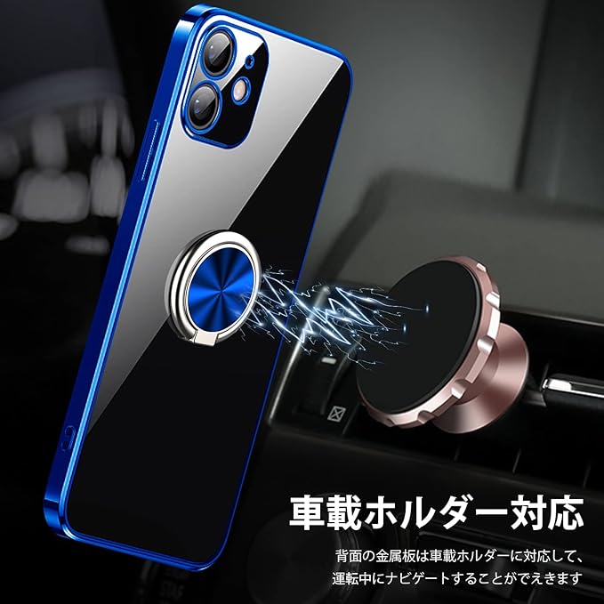 【リング付き】マグネット対応金属板採用し、車載ホルダーに強く吸着することもできます。ケースを横向きにするとスタンド機能になり、360度回転と180度調節可能です。
