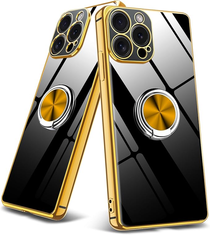 対応 iPhone 15 Pro Max 用の ケース クリア リング付き 耐衝撃 薄型 TPUケース TPU バンパー メッキ加工 スタンド機能 透明 落下防止 擦り傷防止 360度回転 マグネット車載スタンド対応 アイフォン15 pro max 用のカバー 軽量 人気 ストラップホール付き 一体型 保護カバー 金 YZ1-177 | KAZESHOP