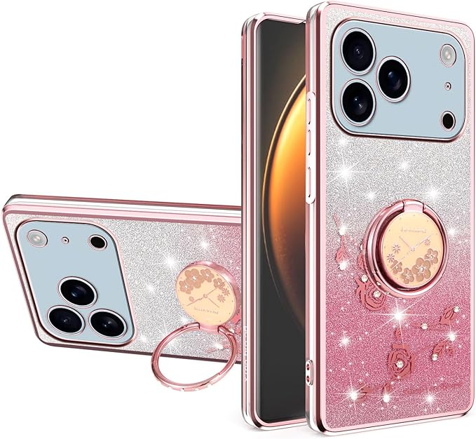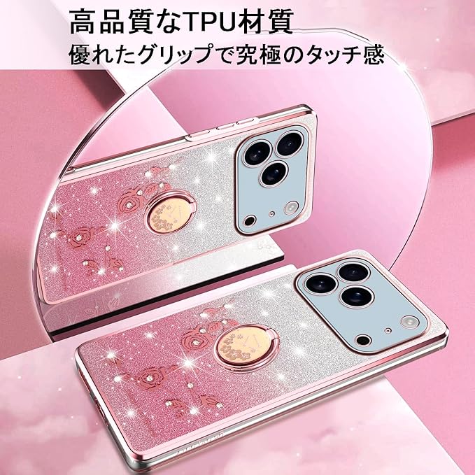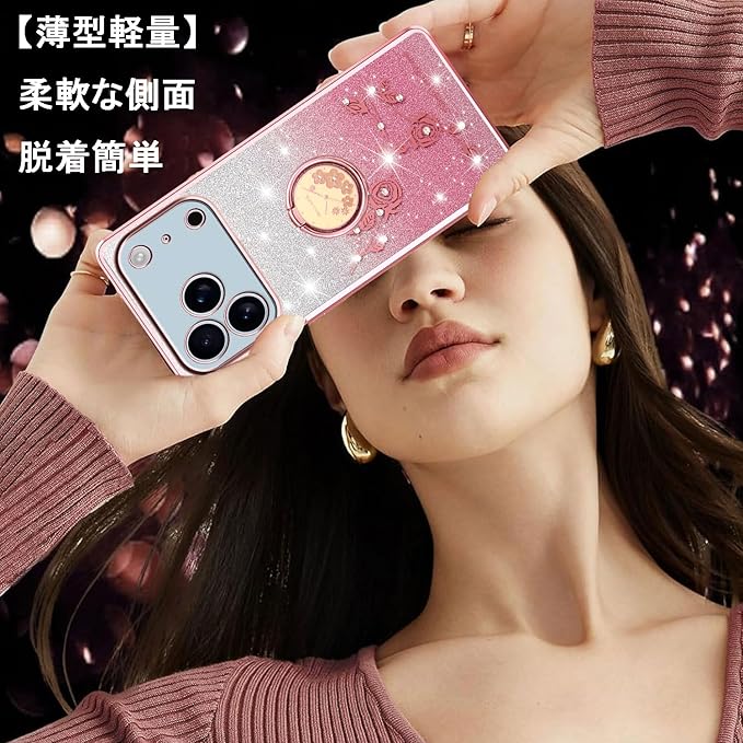 スマホケース 対応 iPhone 17 Pro Maxケース リング付き クリア キラキラ メッキ加工 花柄 ソフトケース TPU 薄型 おしゃれ かわいい 衝撃吸収 ブランド アイフォン17プロマックス カバー (ピンク) | KAZESHOP