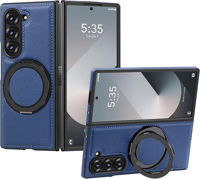 Galaxy Z Fold7 5G 用ケース Magnetic対応 リング付き 耐衝撃 レンズ保護 ギャラクシーゼット フォールド7 5g 用ケース マグネット搭載 360 回転 PC+PUレザー 衝撃吸収 スタンド機能 黄変防止 シンプル スマホカバー 青 J15-15 CP | KAZESHOP