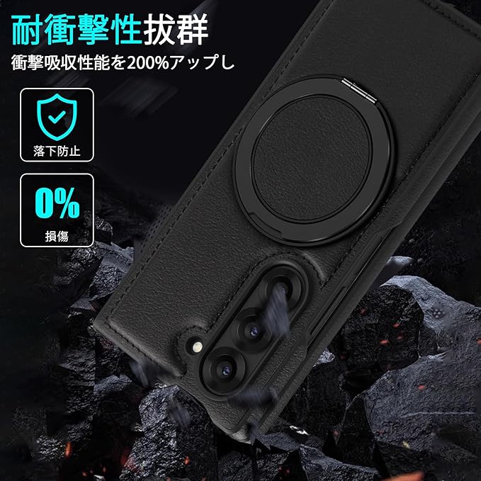 【スタンド機能】リングに指を1本通すことで、片手でスマホを操作でき、落下を防止することができます。ケースを横置きにするとスタンド機能になり、持たず動画鑑賞などを楽しむことができます。