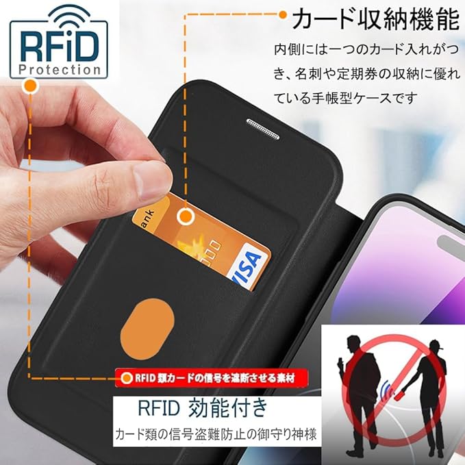 【対応機種】対応iPhone17 Pro Max用のケース。【磁気防止RFID功能 】磁気カードを保護するために磁器遮断功能があり、スキミング防止、不正アクセスから大切なクレジットカード、キャッシュカード、IDカードなどの個人情報を守れるRFIDスキミング防止の機能も備えています。