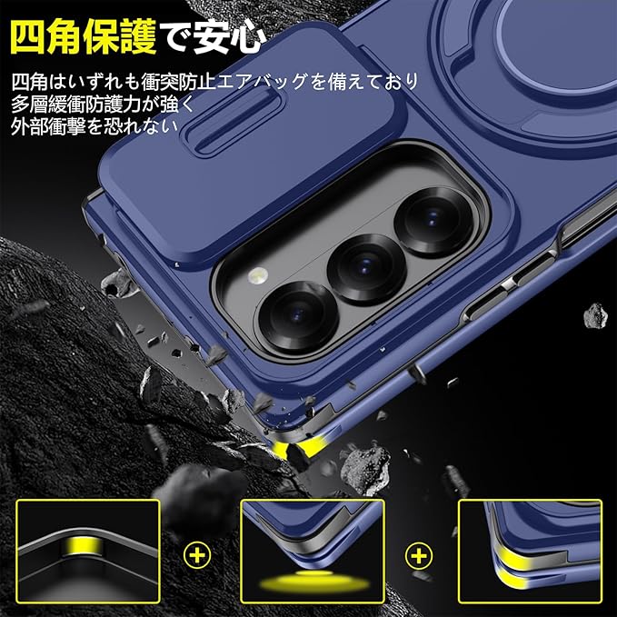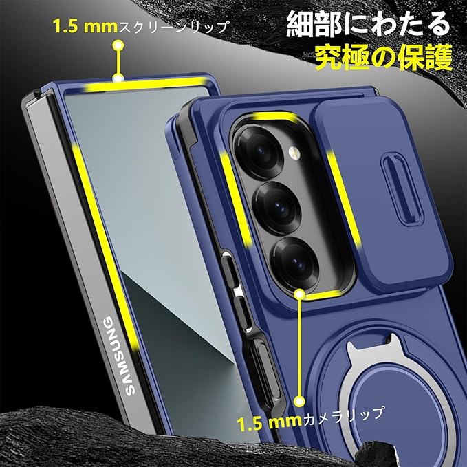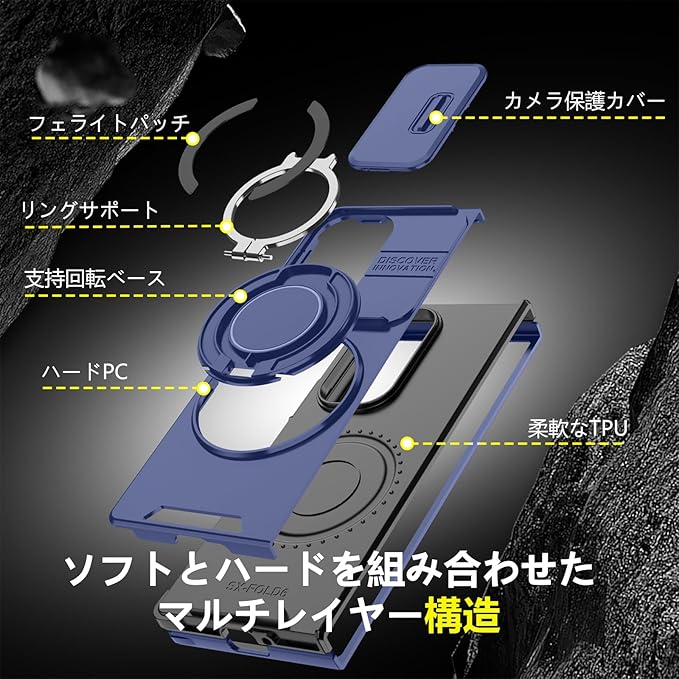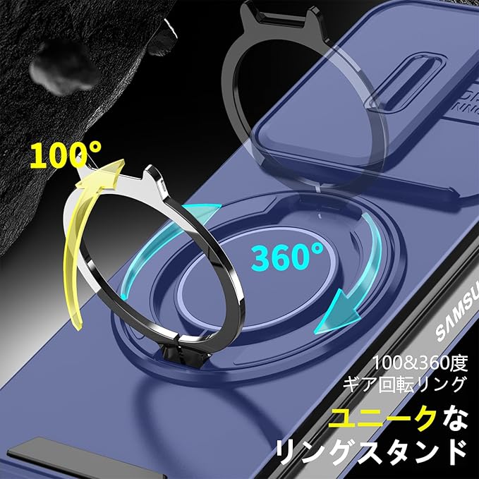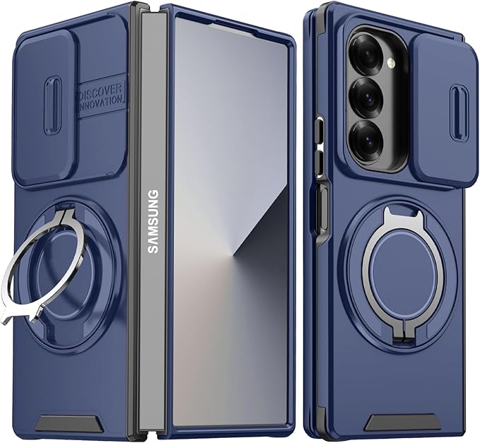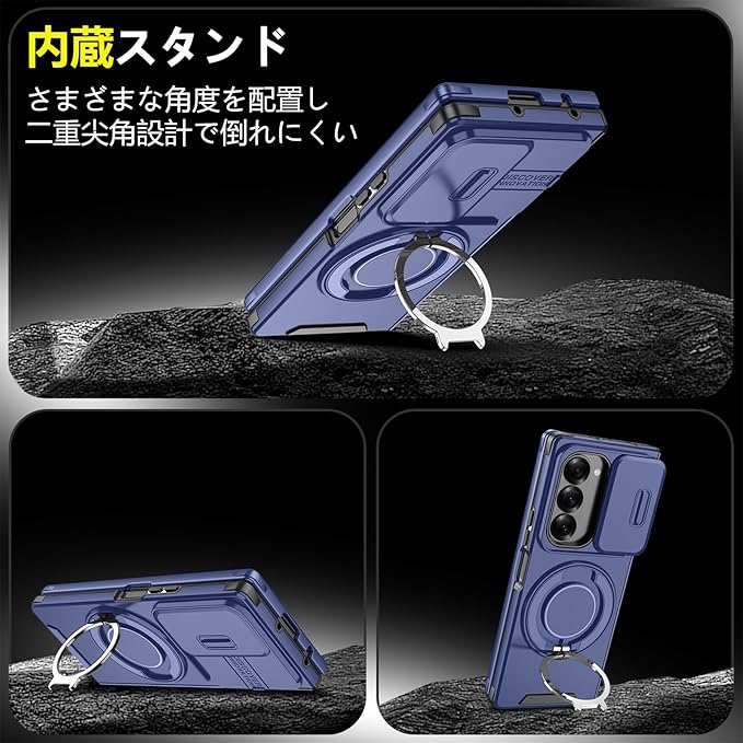 対応 Galaxy Z Fold7 用 ケース スタンド付き リング付き 耐衝撃 レンズ保護 スライドカメラカバー TPU+PC 軽量 滑り止め 落下保護 スタンド機能 車載ホルダー対応 ギャラクシー Z フォールド7 5G 携帯ケース 青 R-LK-Fold7-02 | KAZESHOP