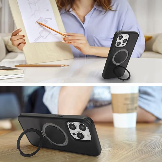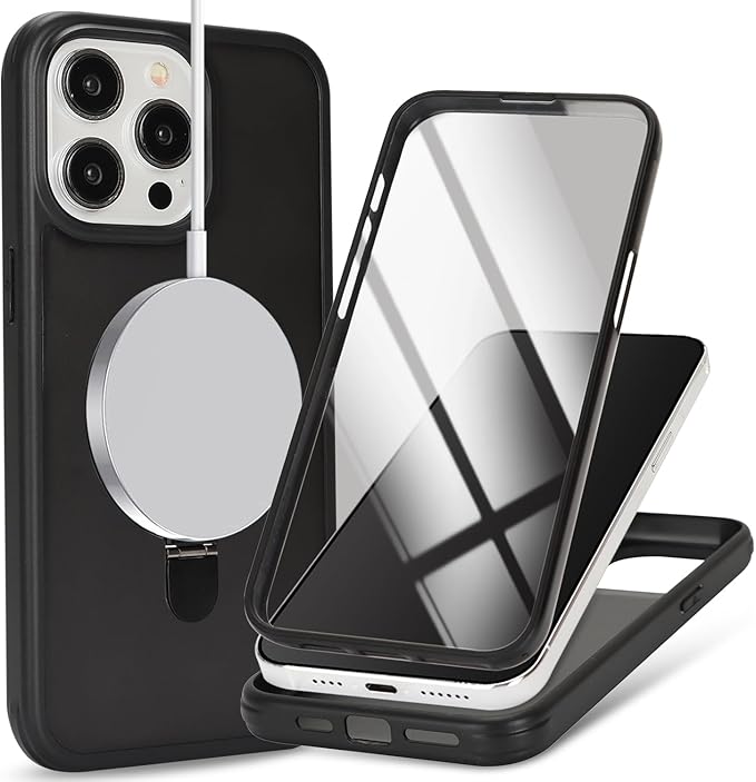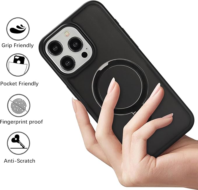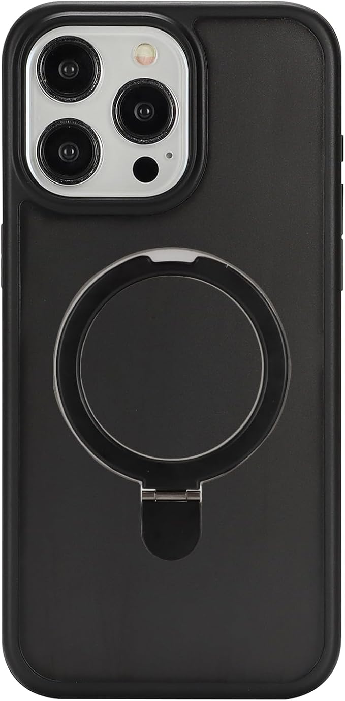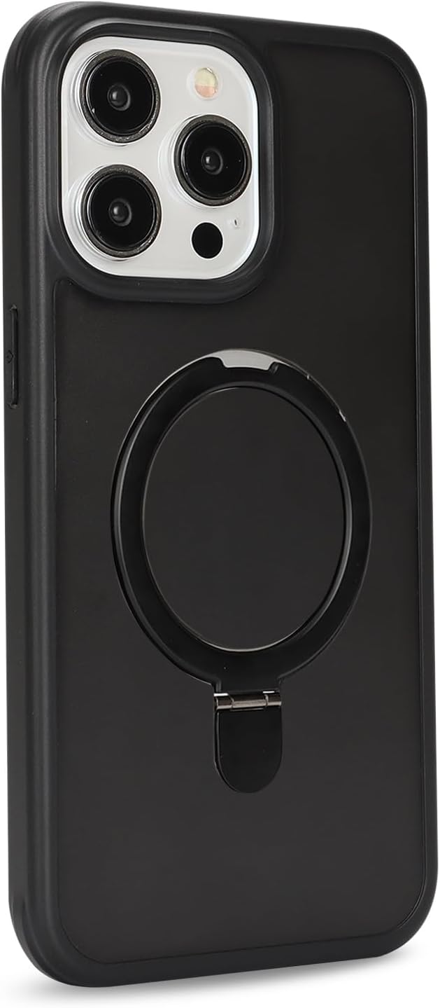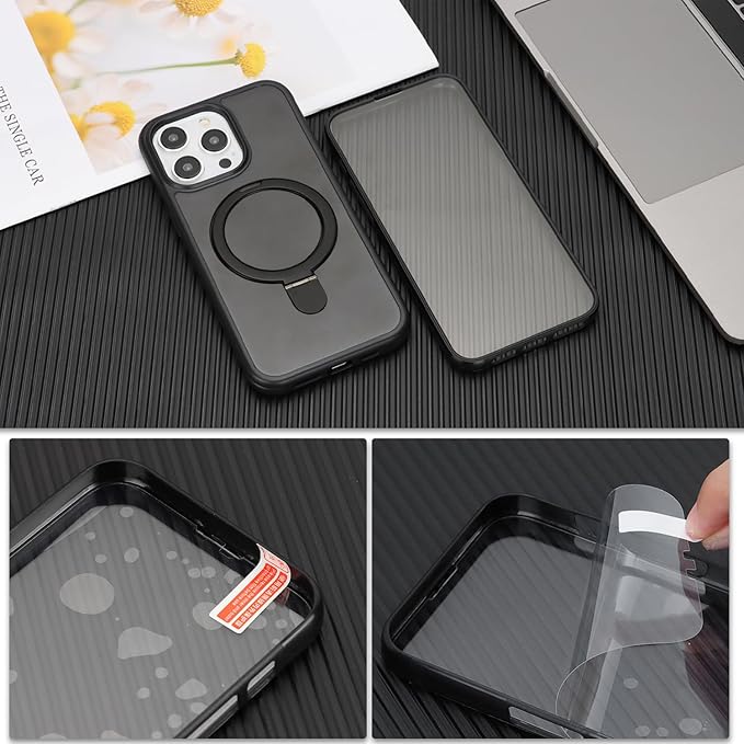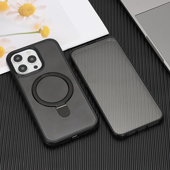 iPhone 15 Pro MaxケMagsafe対応 スタンドクリア 両面強化ガラスで全面保護 米軍耐衝撃 半透明 リング付き ワイヤレス充電対応 マット感 黄変防止 アイフォン 15 Pro Max 透 ケース・スマホケース iPhone 15 ProMax 人気 6.7インチ(黒) | KAZESHOP