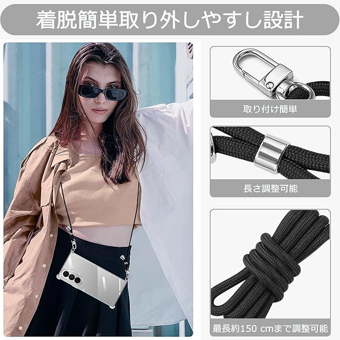 Galaxy Z Fold7 用 ケース クリア ショルダー galaxy z fold 7 用 スマホケース ギャラクシーZ フォールド7 カバー 肩掛け 斜めかけ 縄掛け 透明 耐衝撃 薄型 軽量 紐付き 斜めがけ 織りストラップ付き ネックストラップ ショルダーケース 携帯便利 長さ調整可能 取り外し可能 落下防止 紛失防止 (クリア) | KAZESHOP