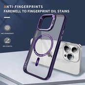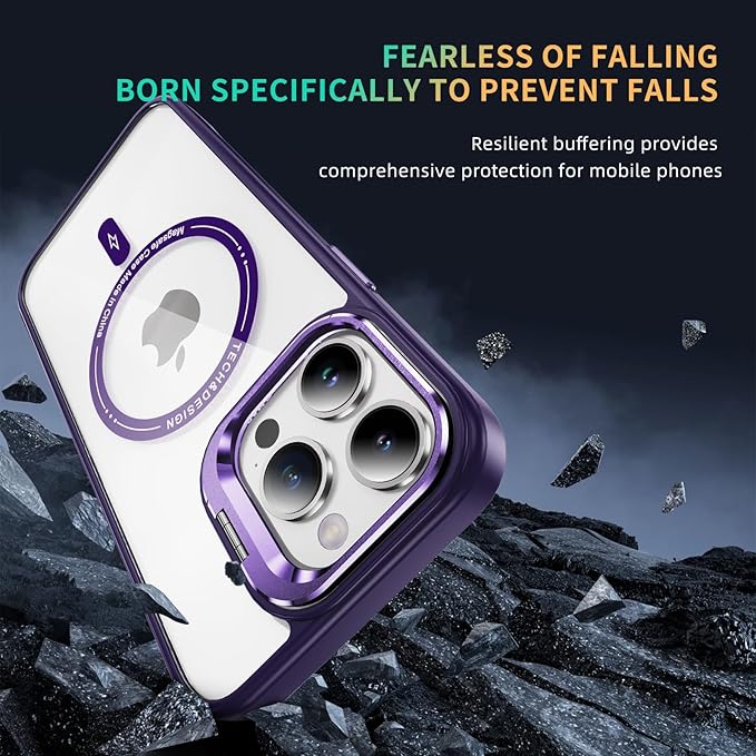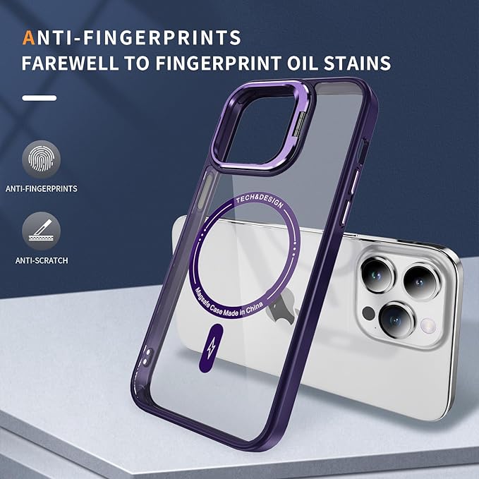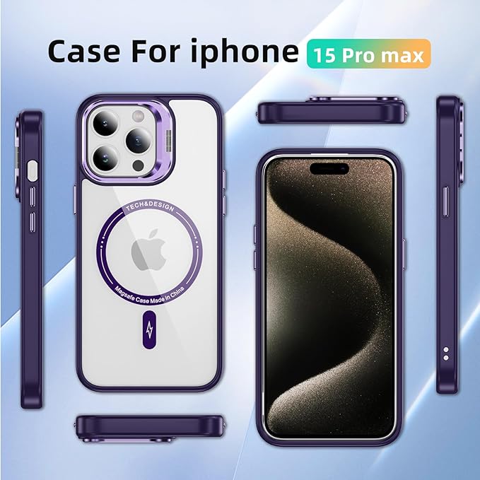 iPhone 15 Pro Max 用 ケース Magsafe対応 (クリア PC 背面 カバー + ダークパープル TPU バンパー) 米軍MIL規格 耐衝撃 いphone15pro Max 対応 ケース ストラップ穴付き リング スタンド 付き | KAZESHOP