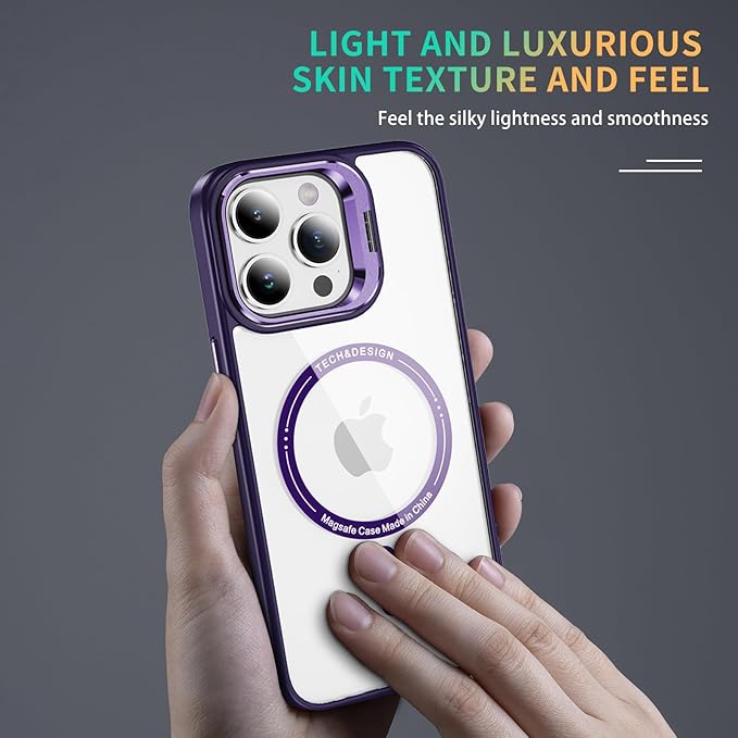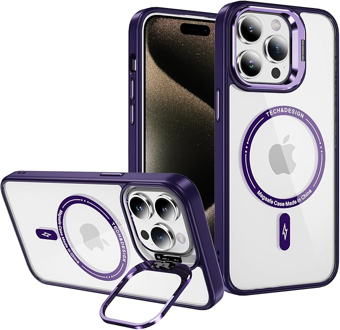 Cakublse Magsafe対応 iPhone 15 Pro Max ケース リング付き スタンド付き 耐衝撃 ダークパープル