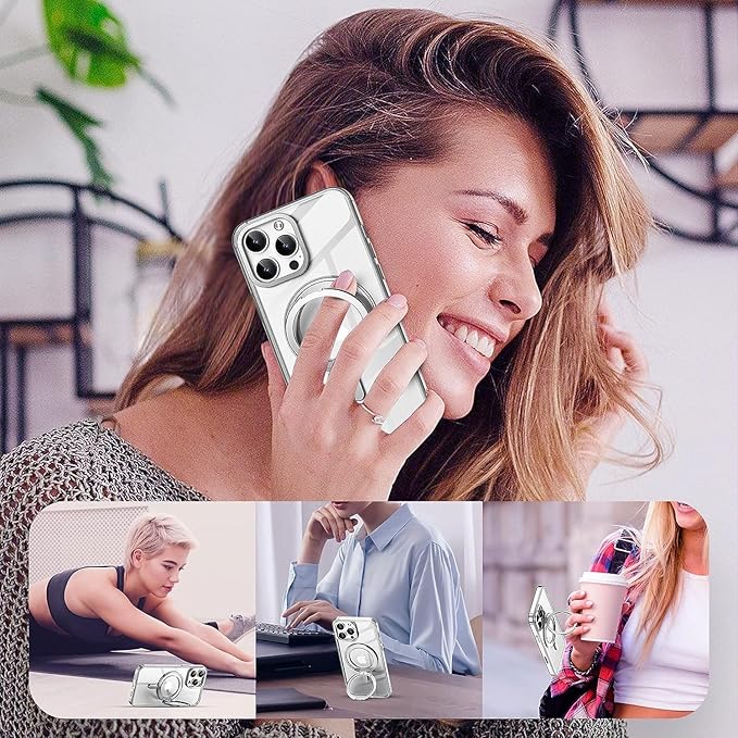 iPhone 15 Pro Maxケース 【多機能360 回転 スタンド】【MagSafe対応】iPhone ケース 丸型スタンド付き 半透明 マグネット搭載 ワイアレス充電対応 縦横両対応 角度調整 アイフォン 15promax 用 ケース(クリア) | KAZESHOP