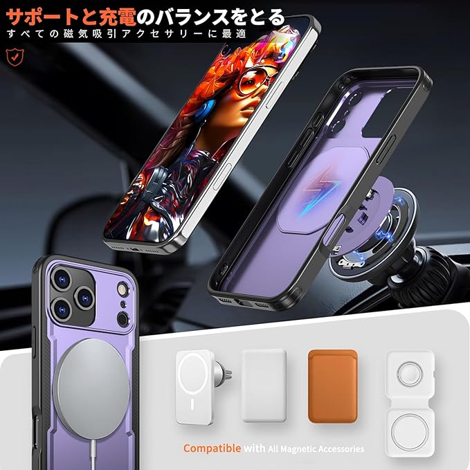 【ワイヤレス充電&マグネット式カーマウントをサポート】:対応ワイヤレス充電、全体的な充電時間を短縮し、ワイヤレス充電体験をさらに向上させます。このケースに内蔵された金属板は簡単に直接マグネット式カーマウントに取り付けることができます。