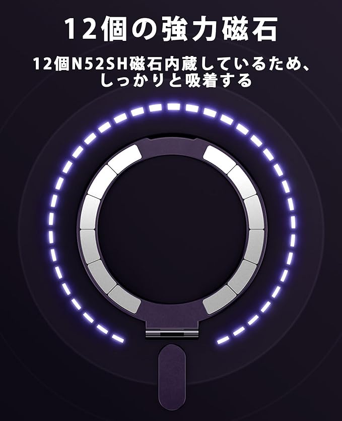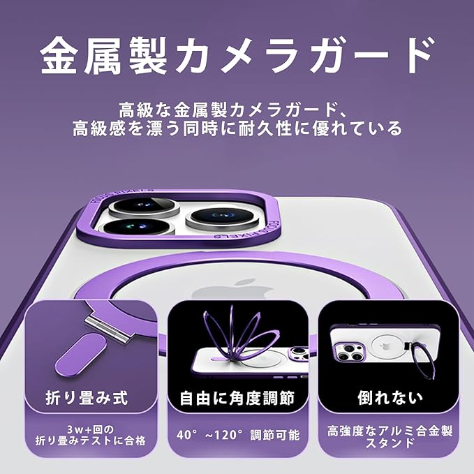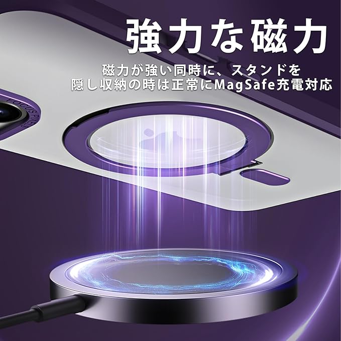【MagSafe対応】強力なマグネットが内蔵しているため、磁力が強くて、スタンドを隠し収納の時は正常にMagSafeアクセサリーと併用できワイヤレス充電も対応します。マグネットでシームレスな生活を楽しめます。