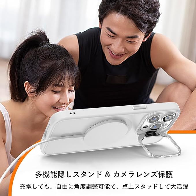 【対応機種&多機能隠しスタンド】iPhone 14ProMaxに対応(6.7インチ)。調節可能な隠れスタンド、充電コイルに影響せず、ワイヤレス充電が容易に。必要に応じて0 -138 の間で調整できます、ゲームやビデオ、FaceTimeを楽しむことができます。両手を解放し、いつでもどこでも便利な生活を楽しむことができます。