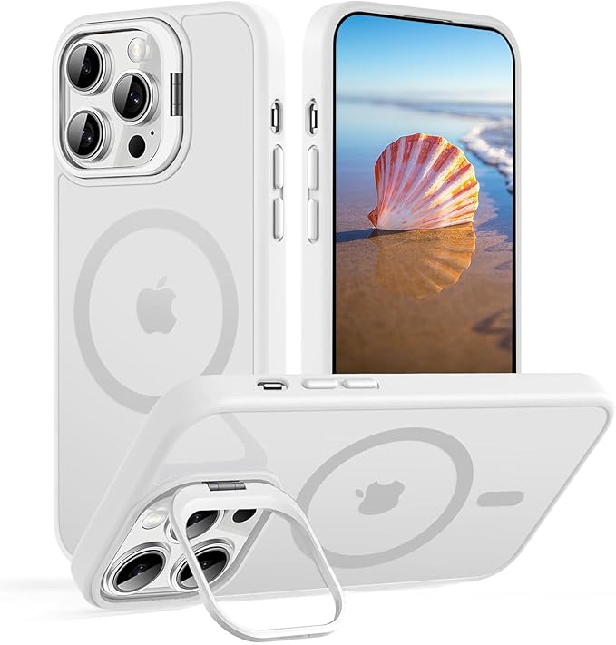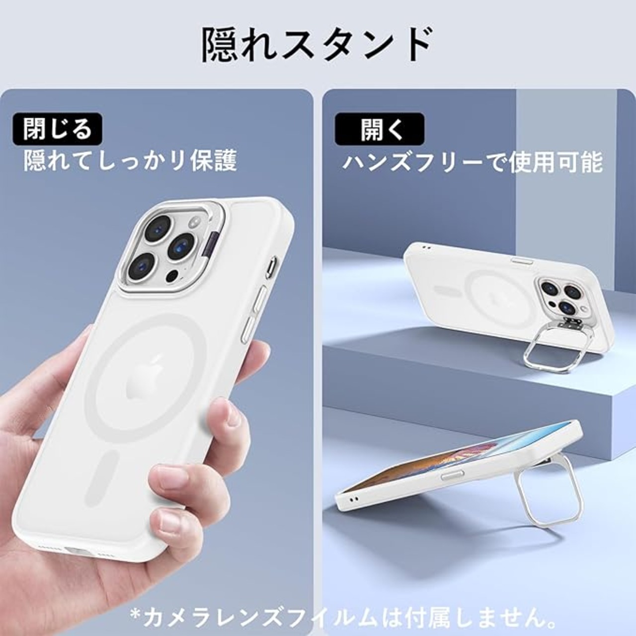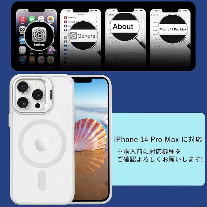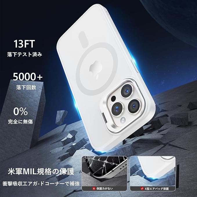 【レンズスタンド内蔵】iPhone 14ProMax 用 ケース 米軍MIL規格 Magsafe対応 隠しスタンド 角度調整可能 マグネット搭載 ワイヤレス充電 磁力強い 耐衝撃 耐久性 黄変防止 半透明 アイフォン 14ProMax 用 ケース (クリア, iPhone14ProMax) | KAZESHOP