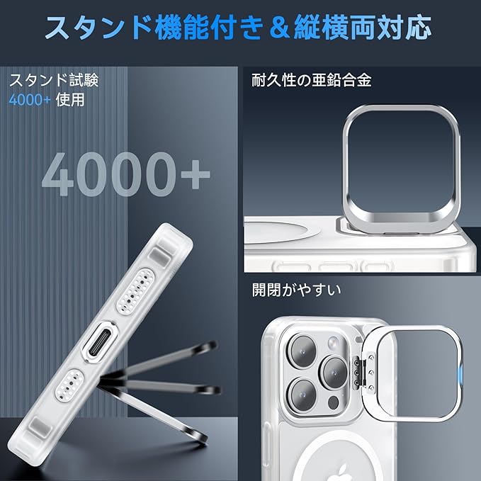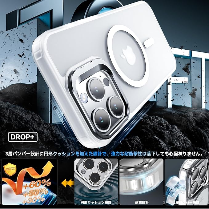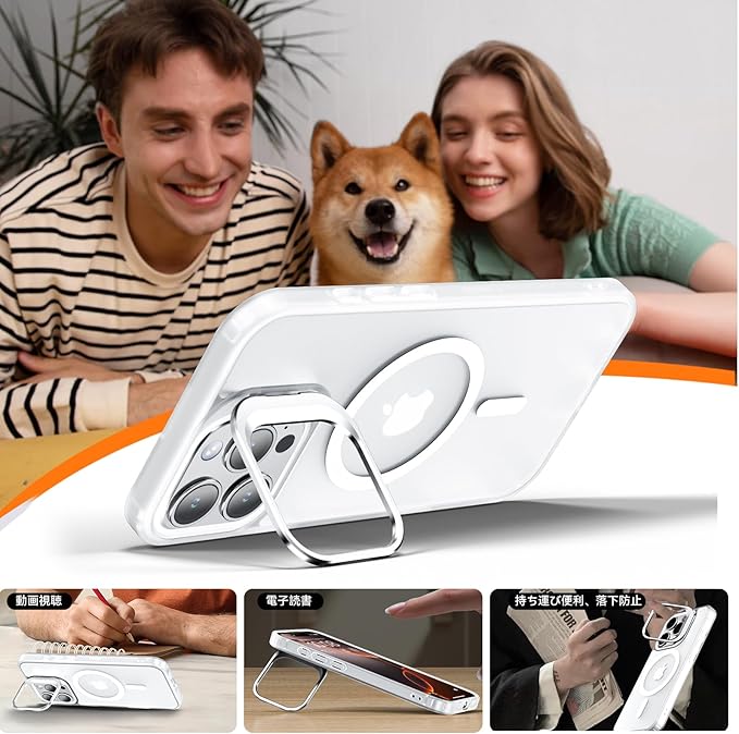 【MagSafe対応&スタンド機能】ケース内部には2024年に新開発された強力なマグネットが搭載されており、吸着力と安定性が向上し、MagSafe充電対応で差し込みのいらない超簡単・超高速充電を実現しています。MagSafe対応アクセサリーもいろいろな iPhone 16 Pro Max ケース!また、カメラの外枠は頑丈なアルミニウム合金材料を用いて開閉しやすい支持枠を作り、スタンドの機能を与え、お好きな角度を調整でき、両手が解放され、いつでもどこでも動画視聴便利です。