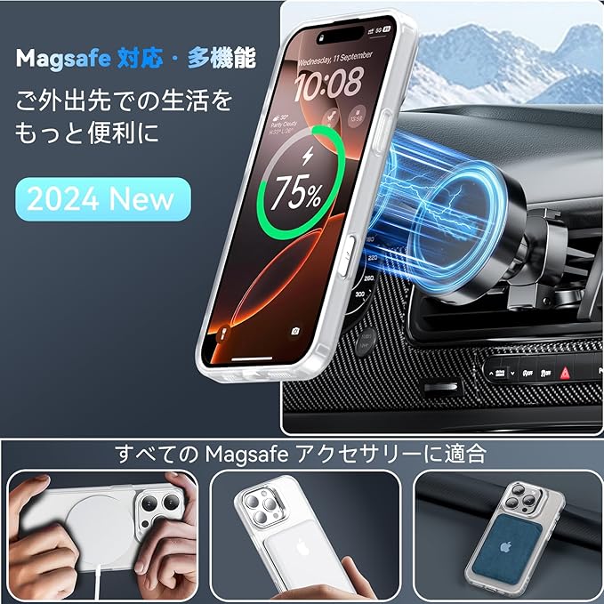 材質 ポリカーボネート(PC), 熱可塑性ポリウレタン(TPU),亜鉛合金,強力なマグネット搭載,黄変防止素材
