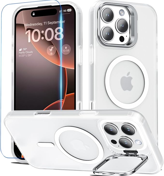 BESINPO iPhone 16 Pro Max ケース [ガラスフィルム付き・MagSafe対応・スタンド機能] アイフォン16プロマックス ケース 縦横両対応 調整可能 半透明 黄ばみなし 指紋防止 いphone16promax ケース 耐衝撃 耐久性 マグネット搭載 マグセーフ対応 隠しスタンド ストラップホール iPhone 16 Pro Max ケース 6.9インチ対応 半クリア | KAZESHOP
