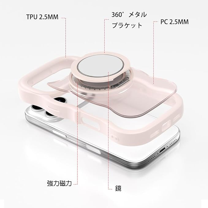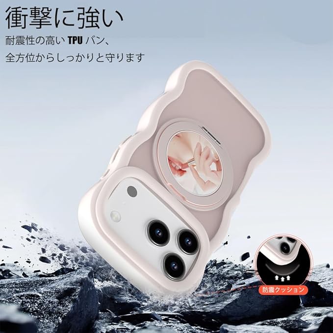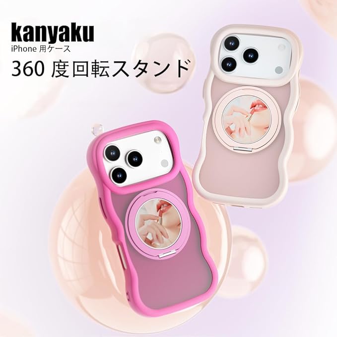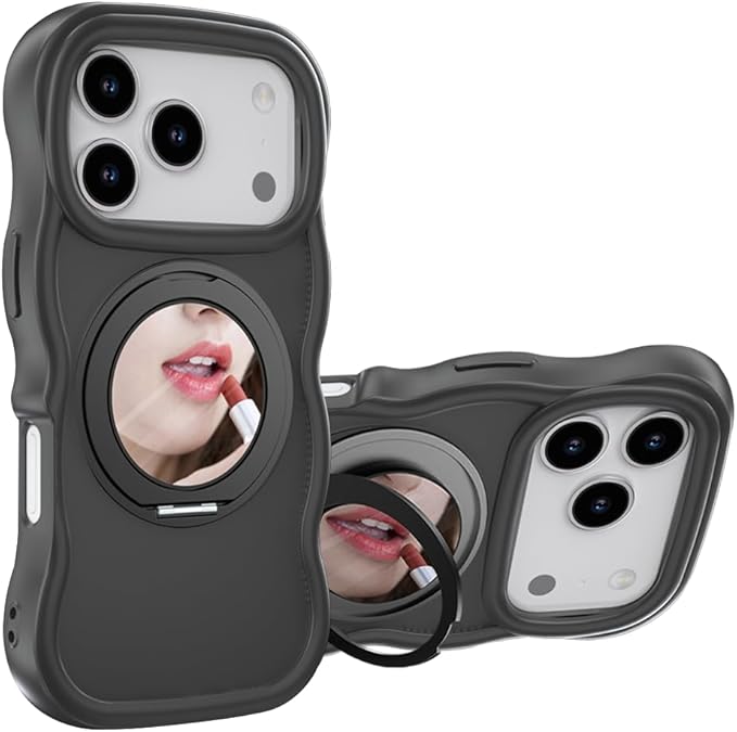 互換品 ケース Iphone17Pro Max用の ケース magsafe対応 超強磁力 TPU 韓国 可愛い ウェーブ ソフト 滑り止め 鏡付き 耐衝撃 半透明 マット感 おしゃれ 360 回転スタンド 縦横両対応 スマホケース iphone 17Pro Max 用 マグセーフ リング マグネット搭載 (360JZ-17pm-hei) | KAZESHOP