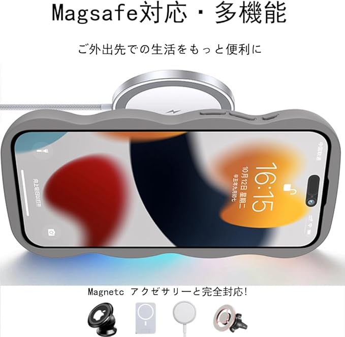 【強力なマグネット】背面に薄くて強い磁力つきで、iPhoneのワイヤレス充電機器であるMagSafeに対応していることも人気のポイント、車載ホルダーでの使用時もとても安心感溢れます。iPhoneの使い心地を高める多機能ケースです。
