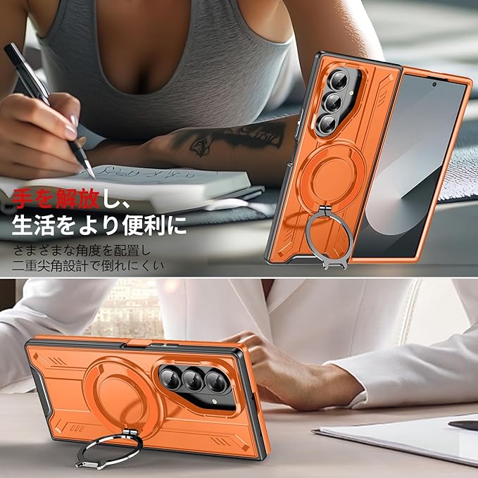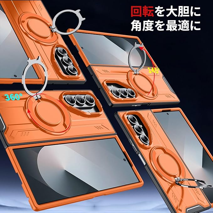 対応 Galaxy Z Fold7 用 ケース Magnetic対応 リング スタンド機能 耐衝撃 TPU+PC 軽量 滑り止め 落下保護 車載ホルダー対応 ギャラクシー Z フォールド7 5G 携帯カバー オレンジ R-LS-Fold7-06 | KAZESHOP