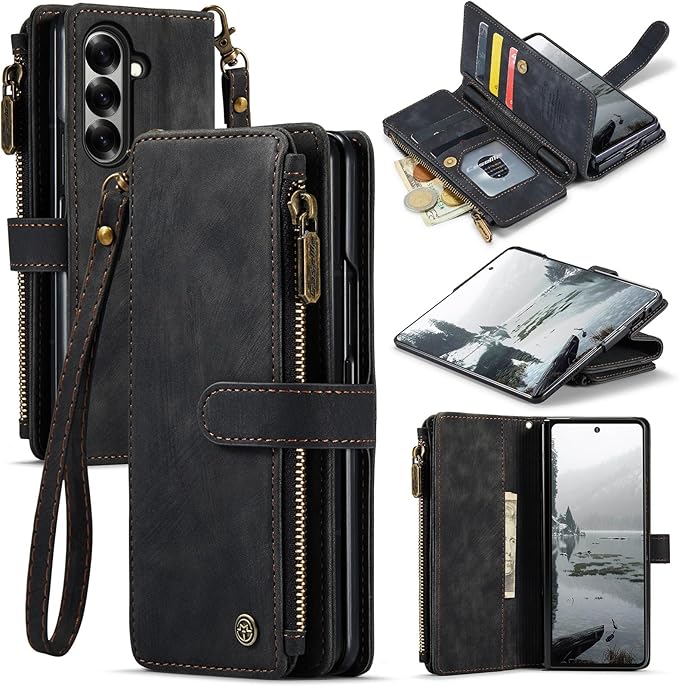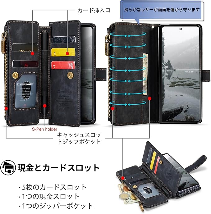 Galaxy Z Fold7 対応 ケース 手帳型 カバー PUレザー 多財布デザイン スタンド機能付き 磁気バックル付き カード収納 コイン収納 ギャラクシーZフォールド7 ケース 手帳型 大容量財布型 収納ポケット 衝撃防止 擦り傷防止 スクリーン/カメラ保護 実用性高 galaxy z fold7 財布型ケース (ブラック) | KAZESHOP