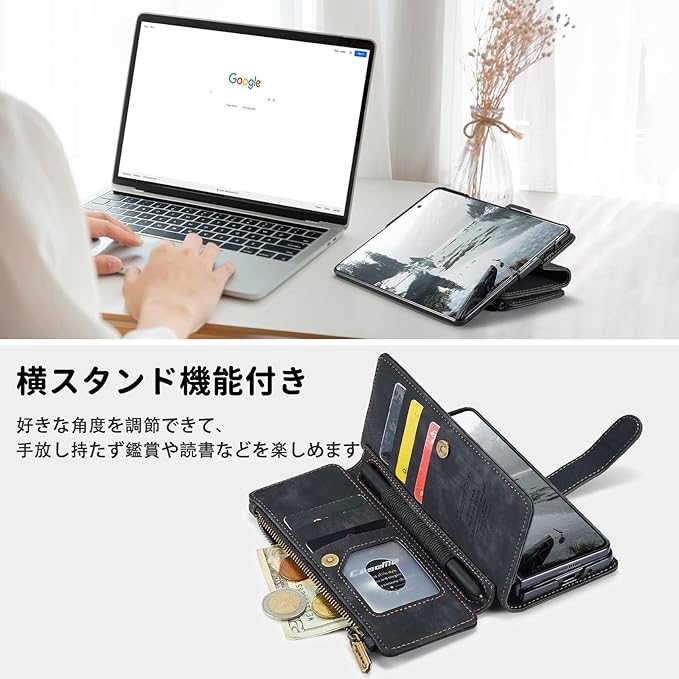 【優れた収納機能】 この商品は新デザインです、ケースの側面には5つのカードスロットと1つのフリーポケットがあり、ジッパー付きの収納スペースもあります。カードを持ち運びしやすいカードスロット設計のビジネスウォレットは、あなたの人生をより便利にします、運転免許証、交通カード、クレジットカード、ICカード、マンスリーパス、名刺などを収納できます