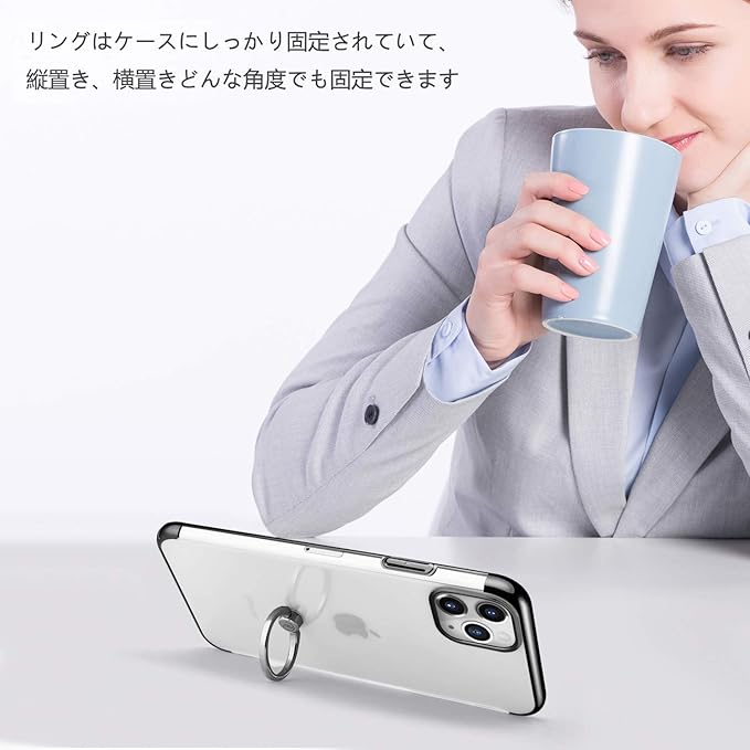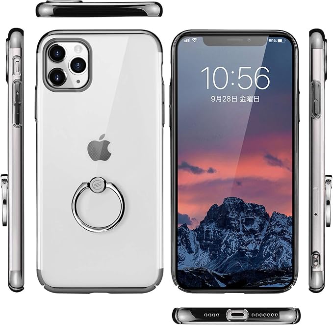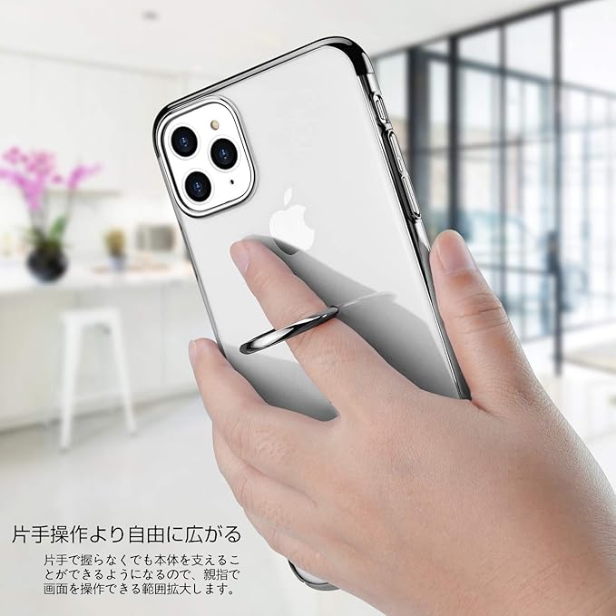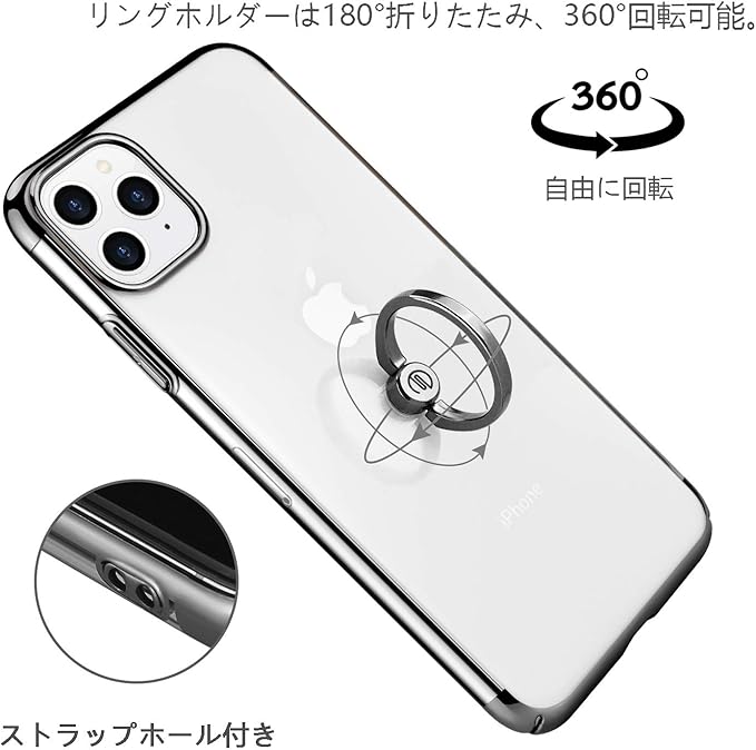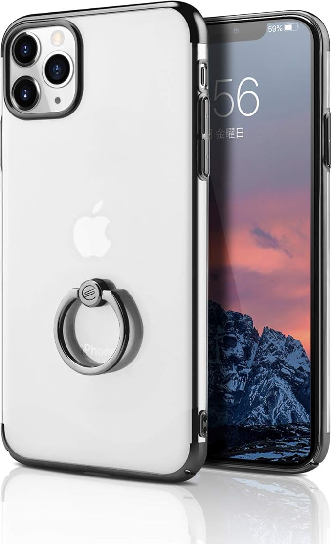 E Segoi iPhone 11 Pro Max ケース リング付き メッキ加工 スタンド機能 透明PC 落下防止 おしゃれ 軽量 薄型 アイフォン11ProMaxケース 一体型カバー 6.5インチ (iPhone 11 Pro Max, ブラック) | KAZESHOP