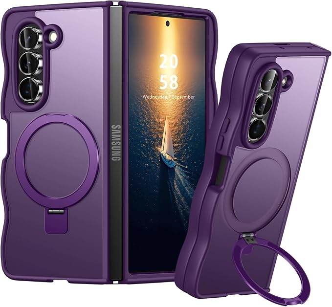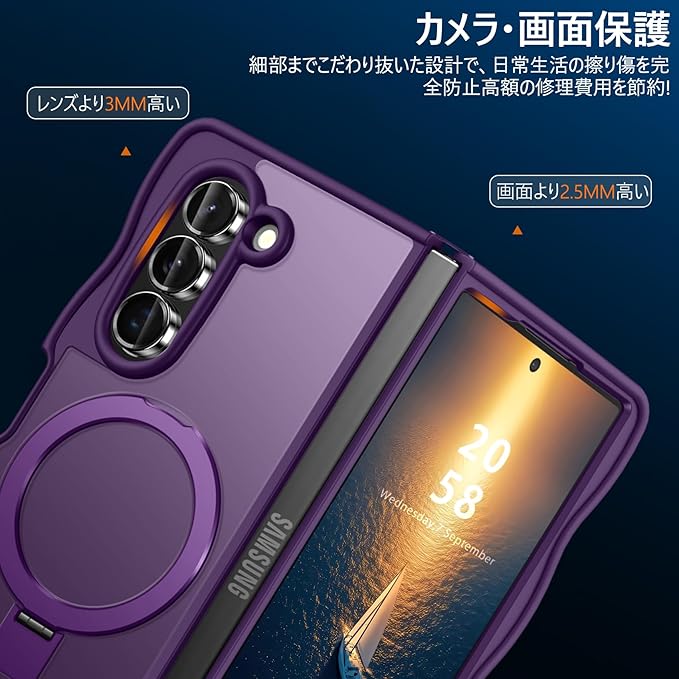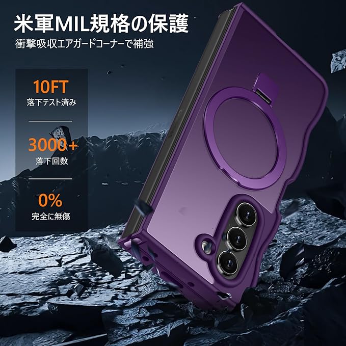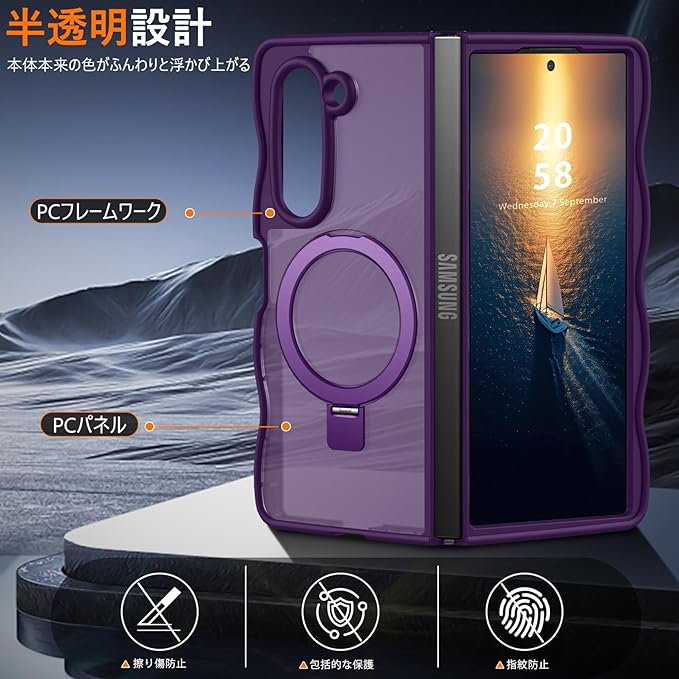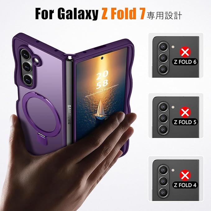 対応 Galaxy Z Fold7 用のケース Magnetic対応 マット半透明 SC-56F SCG34 ケース ウェーブ スタンド スタンド機能 マグネット搭載 ワイヤレス充電対応 ギャラクシーZフォールド7 5G 用のカバー ハード 耐衝撃 衝撃吸収 滑り止め 黄変防止 軽量 人気 携帯カバー 紫 MZ96-11 | KAZESHOP