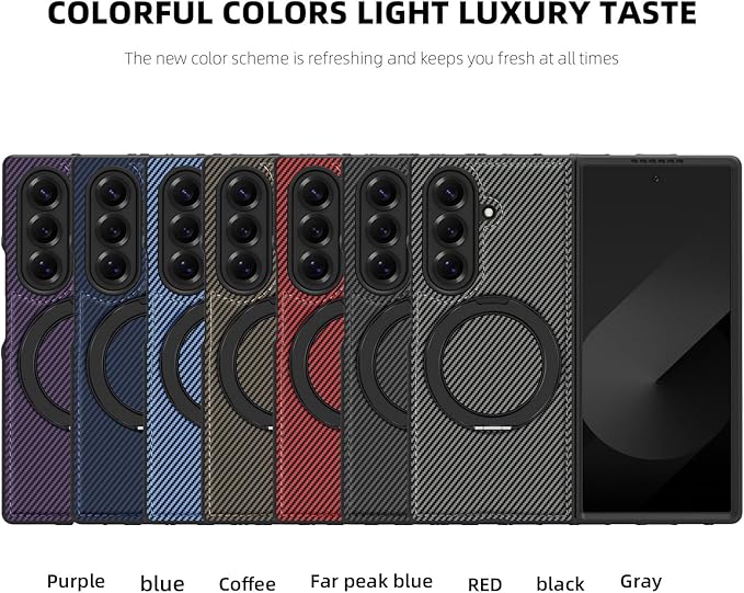 Z Fold7のコンパクトなデザインを革新する次世代多機能プロテクション。カーボン繊維調の上質感と磁気スタンド機能の融合が実用性とスタイルを両立。多層防御構造が衝撃から端末を守りつつ、超薄型設計がデバイスの本質的な美しさを引き出します。