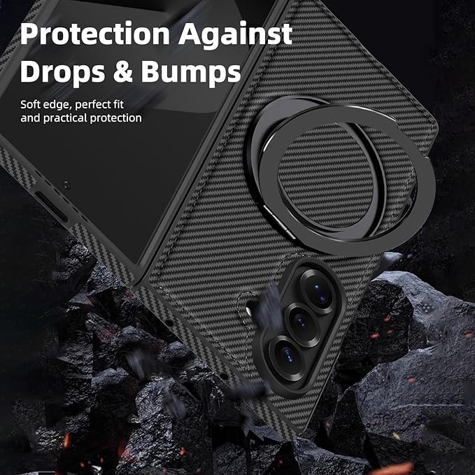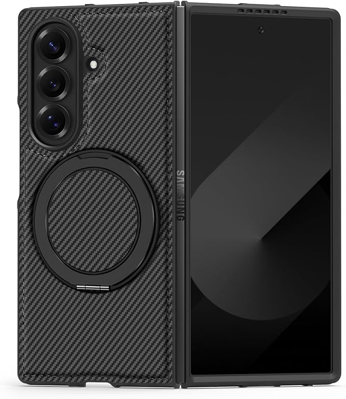 携帯スマホケース Galaxy Z Fold7用 360 カーボン 回転マグネティックスタンド付 多機能統合型 薄型 軽量 ワイヤレス充電対応 独立ボタン カバー TPU 折り畳み 滑り防止 全面保護 複合構造 レンズ保護 指紋防止 ソフト 人気 可愛い 面白い 耐衝撃 Beautycatcher - 黒 | KAZESHOP