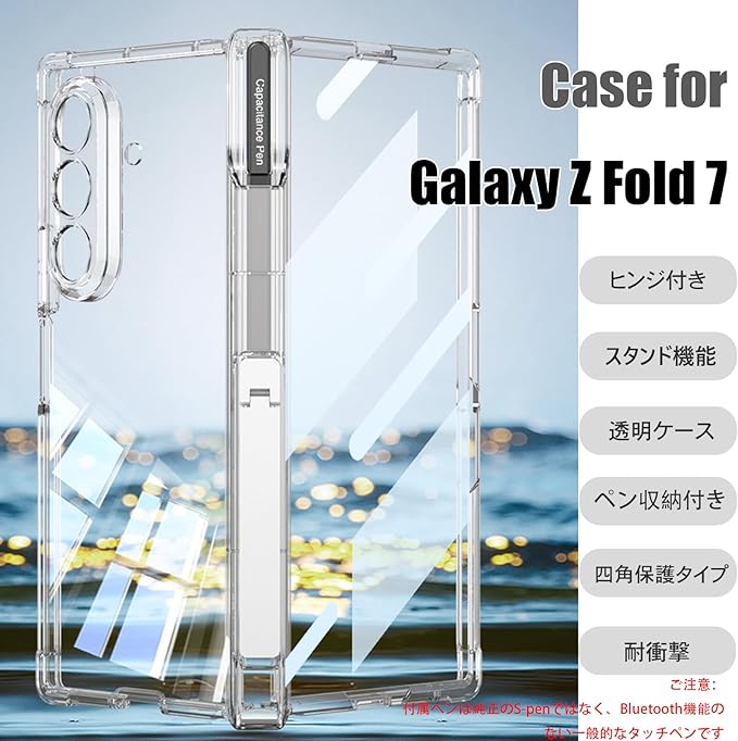 GYOKUYU ケースfor Galaxy Z Fold 7 SC-56F SCG34[ヒンジ付き|ペン収納|四角耐衝撃タイプ]ギャラクシーZ フォールド7 携帯ケース おしゃれ ペン付き(※非S-pen) 耐衝撃 クリアカバー(クリア) | KAZESHOP