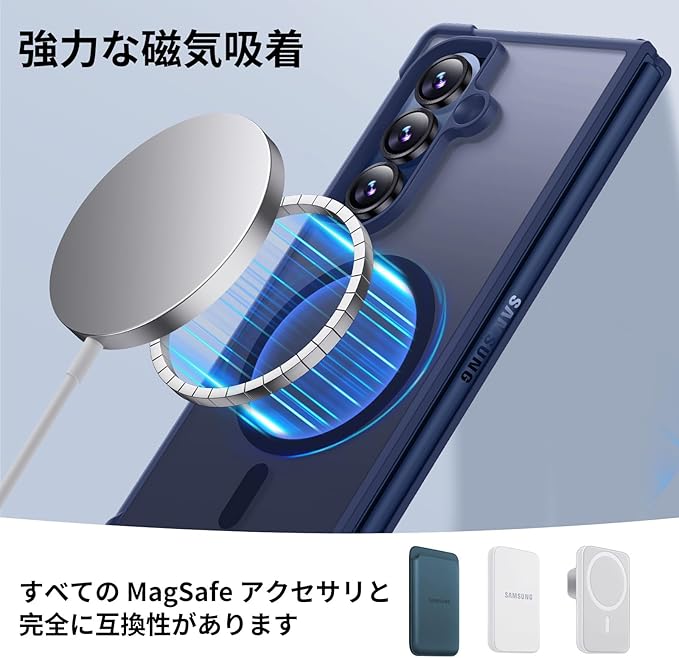 【強力なマグネット設計】内蔵の強力なマグネットモジュールで、ワイヤレス充電器やマグネットスタンドに簡単に吸着。充電や固定が迅速で、使い勝手が大幅に向上します。