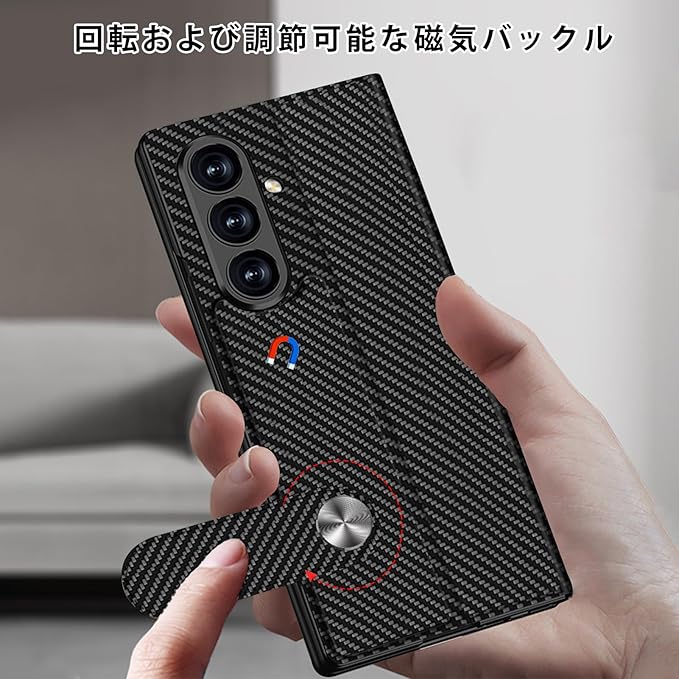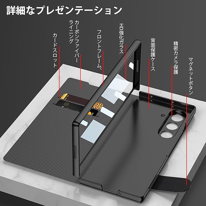 Galaxy Z Fold7 ケース Fold7レザーケース 一体本革/ガラスフィルム付き/手帳型/スタンド機能/ワイヤレス充電対応/カード収納/レンズ保護/耐衝撃/汚れ防止/全身保護 (カーボンファイバー) | KAZESHOP