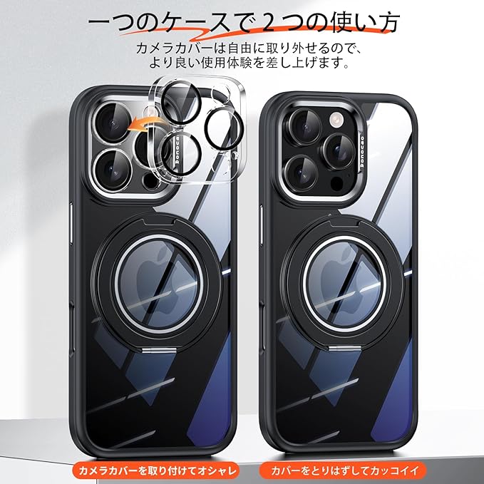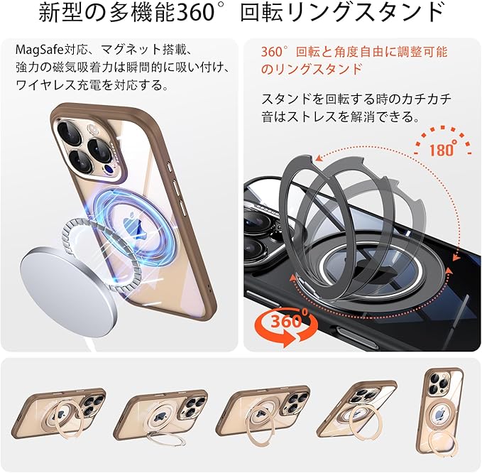 【対応モデル】iPhone15ProMax(6.7インチ)専用MagSafe対応、新開発の360 回転スタンド付き、自由に取付取り外すカメラカバー付きの機能性ケースです、一つのケースは二つの使い方、より良いユーザーエクスペリエンスを提供させていただきます。