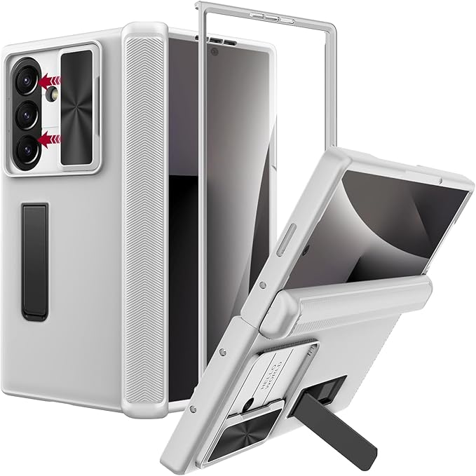 Miimall 対応 ギャラクシー Z フォールド7用スマホカバー ブラケットあり ヒンジ保護 マット加工 for Fold 7 Case スクリーンプロテクター付き レンズ保護 耐衝撃 傷防止 360度全身保護 対応 Galaxy Z Fold 7 ケース シルバー | KAZESHOP