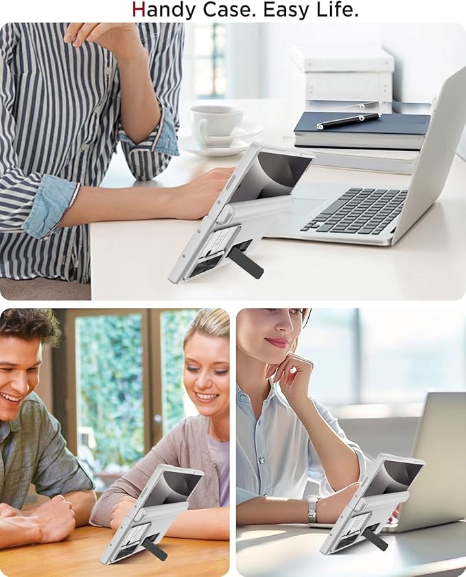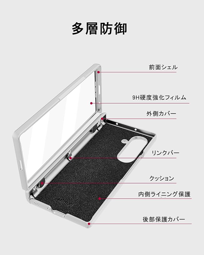 【スタンド機能、ヒンジ保護】このfold7 Coverには収納可能な折りたたみ式スタンドが付属しており、スタンドを開いて携帯電話をデスクトップに水平に置き、ビデオを見たり、セルフィーを撮ったりすることができます。収納式の折りたたみスタンドは、ケースをよりシンプルでエレガントに見せ、携帯の利便性も向上させます。ヒンジ部分を完全に包み込む設計を採用し、本体にぴったりとフィットし、ヒンジ部分や折り目部分の摩耗を効果的に防ぎ、日常の防塵・防衝撃性能を実現します。