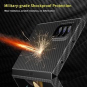 [素材]100%精選の1500Dアラミド繊維から織られたアラミドクロスを真空成型して、スマホケースを成型させた後、コーティングやエッジの処理などをします。アラミド繊維でケースを仕上げるまでに、約30プロセスが必要となっています。軽量、極薄、擦り傷防止、色褪せない、信号干渉なし等の特徴を有しています。