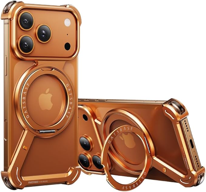iPhone 17 Pro Max 用バンパーケース 360 回転リング magsafe対応 縦置き 横置き スタンド iPhone 17 Promax 用ケース メタルフレーム アルミバンパー かっこいい 四隅エアバッグ, オレンジ | KAZESHOP