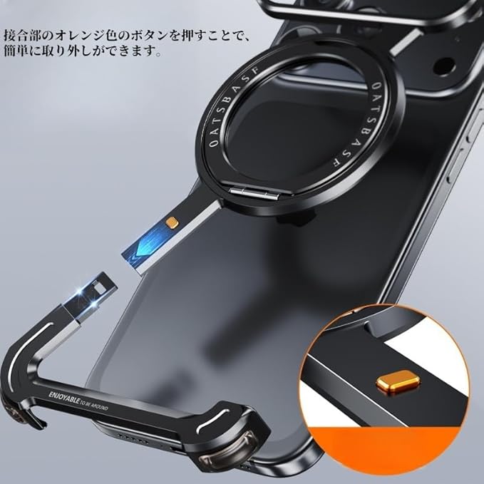 バンパーケース 360 回転リング magsafe対応 縦置き 横置き スタンド メタルフレーム アルミバンパー かっこいい 四隅エアバッグ