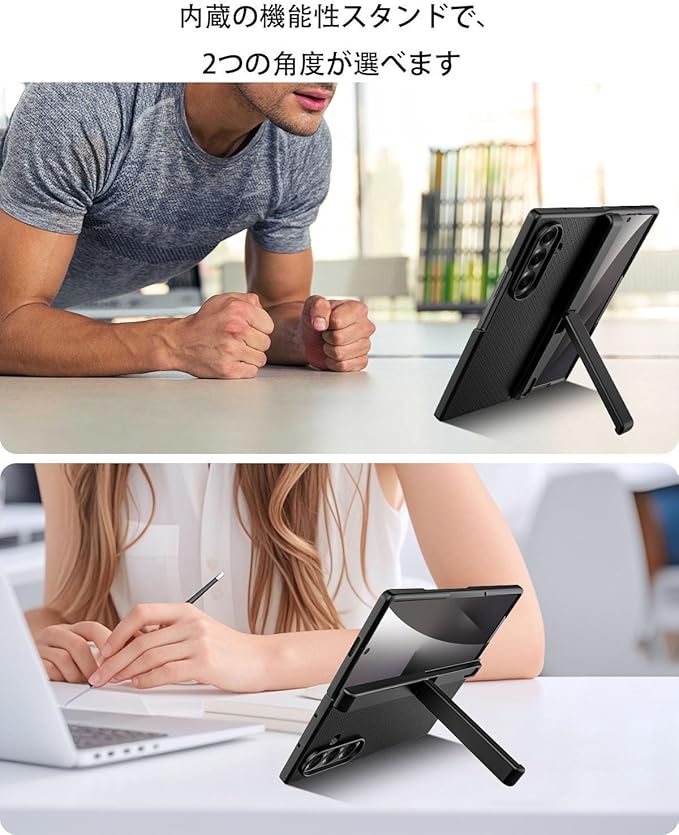 【スタンド機能&高品質素材】多角度で自由に調節可能で、ドラマ鑑賞、ビデオ会議、ウェブサイト閲覧などの場合にも、快適な視点を見つけることができ、手を解放して便利な体験を提供します。高品質の素材を使用し、堅牢で落下に強く、引っかきや磨耗に耐性があり、Fold 7 に確実な保護を提供し、日常の使用中の衝突や接触にも安心です。