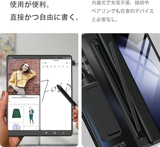 【ペン贈り|ペン内蔵収納】対応Galaxy Z Fold 7 ケース S ペンホルダー,側面カバーにはペン収納スロットがデザインされており、ペンが付属しています。タッチペンを使用して画面上で作業したり、テキストを入力したり、使用しないときは収納スロットに挿入したりできます。 統合されたペンスロットデザイン。[押して排出] スタイラス,操作が簡単で便利です。