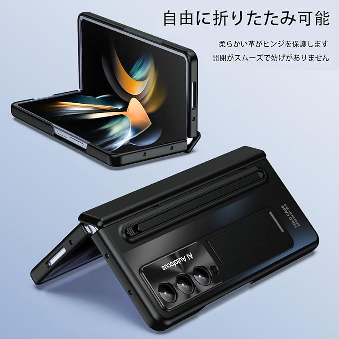 【隠しスタンド|ヒンジ保護】対応Galaxy Z Fold 7 スタンド, 隠しブラケットが付属しており、そっと開くことで携帯電話ホルダーに変えることができ、不要なときは隠すことができます。横方向と縦方向のスタンド,あなたは好きな角度を自由に選ぶことができます。対応ギャラクシー z フォールド7 ハードケース,自由に折りたためます。柔らかい革がヒンジを保護します。開閉がスムーズで妨げなし。