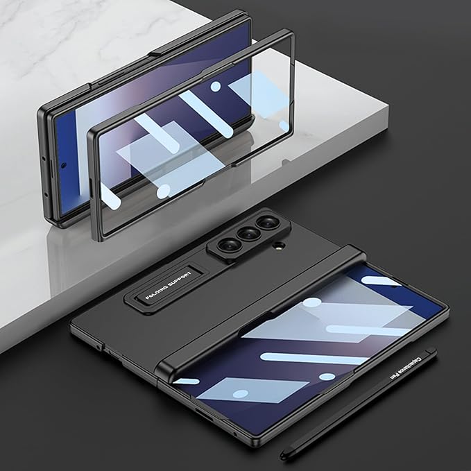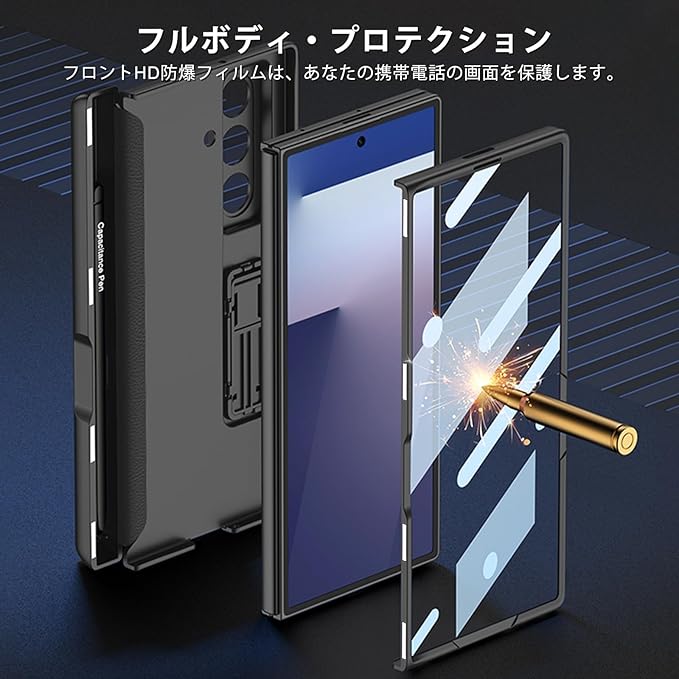 Galaxy Z Fold7 ケース【ペン付き】ギャラクシーz フォールド7ケース【ガラスフィルム付き】レンズ保護/スタンド機能/磁気ヒンジ/耐衝撃/汚れ防止/おしゃれ/落下防止全身保護カバー (ブラック) | KAZESHOP